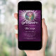 A girly and feminine 18th (or any age) party invitation. A deep purple background colour. The purple colour is uneven. Decorated with a colourful disco ball. Text: Let's Party! Personalize and add a name and party details. The name is written with a hand lettered style script.