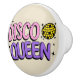 Colourful retro style "Disco Queen" text design with black and yellow disco ball decoration
