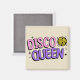 Colourful retro style "Disco Queen" text design with black and yellow disco ball decoration