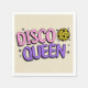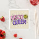 Colourful retro style "Disco Queen" text design with black and yellow disco ball decoration