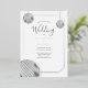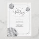 A disco-themed wedding invitation in white, grey, and silver foil. Have a fun wedding theme that can be as light-hearted or elegant as you like. Simply add your text, add this invitation to your cart, then have a wedding that is groovy.