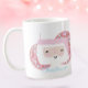 This adorable pink Christmas mug features a fun cartoon Santa with disco balls and a spot for you to add a name. A sweet custom gift for your daughter or a grand child.