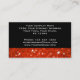 Business card with a glamourous stylised "disco mirror tile look" printed pattern in shades of red and white, and white text on a black background.. Can be used as a background for your own text, images and ideas. Please note this is a printed digital art image, it does not shine or contain real mirrors or glitter.