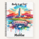 A stunning view showcases the enchanting landscapes of Arkansas, framed by majestic mountains and a picturesque skyline illuminated by a warm sunset glow, inviting adventure and exploration.