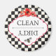 Whimsical Round Dishwasher Clean-Dirty Magnet featuring poppies and a fancy bee