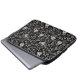 The sleeve is made of nice feeling material and seems very durable. I'm not sure how easy it'll be to clean, but the construction seems sound and the fabric is quick thick. I also like the double zipper. The printing is lovely and appears durable. The white on black contrast is nice, and the design very elegant.