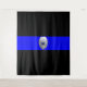 Our Thin Blue Line Tapestry is designed to honour the men and women of the front line who risk their lives each and every day to maintain peace in our communities. Without the our police, deputies and other law enforcement personnel the world would be a much more dangerous place. This design is perfect for any man cave, meeting room, office, conference room or even in your home. Display this universal symbol of those behind the badge proudly and honour those who have given their lives in the line of duty while showing your support for those who have bravely stepped up and filled their shoes. This design makes a great adornment for a police department lobby wall or a drape for second floor railing, banister or interior window. Feel free to customize it an add text to it if you like, such as an agency name, motto or accreditation.