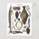 Vintage illustration showing a variety of fish; Crab, Oyster, Eel, Mussel, Lemon Sole, Halibut, Prawn, Sturgeon, Trout, Sprat, Brill, Escallop, Lamprey, Whitebait, Lobster, Dover Sole. Great fish guide for the fisherman or chef!