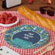 Add your own message to create the perfect custom party supplies for any occasion. These paper plates feature illustrations of retro style disposable cameras in shades of blue, teal and green against a navy blue background with your personalized message in white lettering.