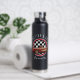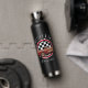 For the Corvette lover, this custom design features a photo of a red Corvette*, over a black and white chequered circle. The circle is trimmed with a red and white border. The text in this design reads, "Distinctive & Unique" Corvette. The Thor Copper Vacuum Insulated Bottle is available in three bottle sizes, 22oz., 25oz. and 32oz. Also, this water bottle comes in four colours white, navy, silver and black. *NOTE: The Corvette photo used in this design was taken by G. L. Cervelli and is being used with his permission.