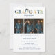 This law graduation invitation features a distinguished navy blue design that conveys elegance and academic prestige. The focal point is the word Graduate presented in a modern multicolor faux gold effect, adding visual interest and a refined finish. The design incorporates a graduation cap and the scales of justice, symbolic elements representing law and the professional path of lawyers. The layout is structured with a balanced three-photo composition, allowing you to highlight meaningful moments while creating a harmonious and visually engaging piece that celebrates a significant academic milestone with style and personality.