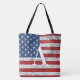 Distressed American Flag 4th of July Initial Tote Bag