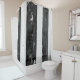 Distressed Black and White Striped Shower Curtain. The worn abstract design gives a rustic feel, sure to fit most modern and contemporary of interiors. Mix and match with other items with similar designs such as rugs, towels and more.