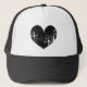 Distressed black heart trucker hat. Vintage cap with faded love symbol.