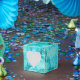 Beautiful pattern featuring distressed vintage ephemera and rose illustrations in blue. A perfect favour box for teas, showers, birthdays and more.