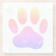 Cartoon dog pawprint in orange, red, pink, blue and purple.. Custom coasters with grunge, distressed effect.