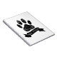 Distressed dog paw print with black ribbon. Man's best friend. Black and white image.