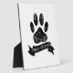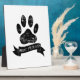 Distressed dog paw print with black ribbon. Man's best friend. Black and white image.