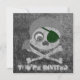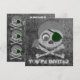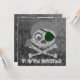 Custom two-sided invitation cards. Front has customizable "You're Invited". Back has invitation information--enter your event title, date, time, location, and additional info or personal message. Grey skull and crossbones with dark green eyepatch and grey bandanna. Eyeball in left eye socket. Design is distressed.
