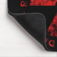 Black mousepad with severely distressed red radiation symbol and warning text.