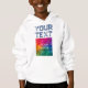 Distressed Text Front Design Add Image Logo Here Template Clothing Apparel Pullover Kids Personalized Kids Boys White Hooded Sweatshirt Pullover.