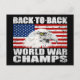 A classic vintage patriotic postcard, with a distressed worn look. This design features a U.S. Flag, an American Bald Eagle, and the popular funny saying, "Back To Back World War Champs". The perfect patriotic postcard for Memorial Day party invitations, or for any patriotic occasion! Grab yours from this American Zazzle Pro Seller today, and send it with pride.