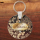 distressed victorian gold chocolate brown damask keychain