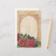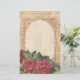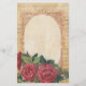 Distressed look with oval writing area bordered by vintage lace, musical notes and deep red roses