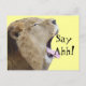 Une carte postale amusante, unique et captivante, avec une photo originale d'un lion mâle avec sa bouche ouverte, et sa langue qui sort avec "Dites Ahh !" en gros texte en gros gras, qui explose juste à côté de la bouche ouverte de ce Roi de la Jungle montrant ses grandes dents. Une carte postale parfaite pour les patients pour les cabinets de dentiste pour les rappels de rendez-vous dentaires et idéal pour les cabinets de vétérinaire. Aussi idéal pour les autres cabinets de médecin vérifier les rendez-vous de rappel. Parfait pour les bureaux des pédiatres, même les bureaux vétérinaires. Placez facilement vos informations personnalisées sur le dos~ supprimez tout si aucun n'est nécessaire. La couleur jaune clair arrière - plan des deux côtés de la carte peut facilement être changée en n'importe quelle couleur. Il suffit de cliquer sur "Customisez-le", puis "modifier", puis "arrière - plan" pour passer à n'importe quelle autre couleur claire.