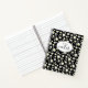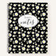 This notebook features a cute ditsy black and white daisy flower pattern along with a custom name and the word "Notes" on the front cover.