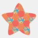 A sheet of very pretty star-shaped stickers, with a country-style faux-patchwork pattern of hexagons of ditsy orange Floral, red, yellow and orange Stripes and white Polka Dots on an orange background. Coordinates with the Orange Fizz range.