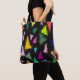 You will love carrying this All-Over Print Tote Bag, with the different sizes and colours of triangles, created with rough brushstrokes, on a black background. Stylish and fun!