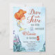 Dive into Five Orange Mermaid Girls 5th Birthday Invitation
