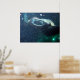 Manta Ray in the dark ocean depths. Destination scuba souvenir and gifts