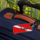 S.C.U.B.A Flag, or Diver Down Flag, is a red and white signal flag flown on a boat to indicate that there are divers in the water and for other boaters to stay clear. This has a diver in full scuba gear diving down.