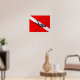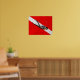 S.C.U.B.A Flag, or Diver Down Flag, is a red and white signal flag flown on a boat to indicate that there are divers in the water and for other boaters to stay clear. This has a diver in full scuba gear diving down.