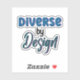 A typography sticker that says “Diverse by Design” in blue and green to promote neurodiversity awareness and acceptance.