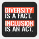 Diversity is a fact Inclusion is an Act Square Sti Sticker