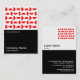 A business card design half black and half white with a modern abstract motif. Main company details on the front with name and contact details on the back with a similar theme.