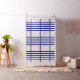 Stylish fabric features a bold geometric pattern with groups of five vertical blue stripes divided by horizontal blue lines. The blue on white design has a classic look and is an original creation.