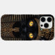 Protect your phone with the Divine Bastet Majestic energy of this stunning iPhone Case Art. This captivating design features the powerful face of a black cat (representing the goddess Bastet) with glowing yellow eyes, set against a background of gold and black hieroglyphic patterns, evoking the grandeur of a sarcophagus.
