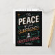 A black graphic postcard featuring the words The Peace of God with a unique design.