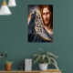 A vibrant painting depicting Jesus Christ with the words The Lord Is My Rock. He is surrounded by a feeling of strength and protection, symbolizing faith and divine guidance.