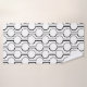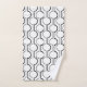 Ce rideau de douche a un design moderne du milieu du siècle de cercles en noir coupé en deux et sur des lignes sur un champ de blanc.
