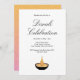 Diwali Celebration invitation, with a black and gold diya flame lamp design and script lettering. With black customizable text, you can add your own information. The back has a pink and gold glitter background, an elegant way to plan your Festival of Lights party or family gathering.