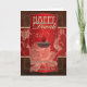 Diwali Greeting Card With Lamp And Flowers Red And Brown