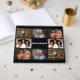 An easy to personalize four photo collage on a background colour of your choice that has a white script font for your personal heading.