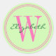 DIY Choose Your Own Colours Name Monogram Envelope Seals, initial colours Celery Green background, Hot Pink initial, Hot Pink circular frames, Dark Green name ==========