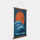 Create your own custom travel poster to decorate your space. This tapestry wall hanging is ready to be personalized with the name of your local beach, your favourite vacation spot or any text you choose and has a fun retro surf style. It features a retro style illustration of crashing waves in shades of blue with a glowing orange sun above and seagulls silhouetted against the sun. The graphic has a distressed style giving it a worn, vintage look. And your text appears in coordinating light blue lettering. It's perfect for decorating your beach house.