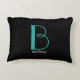 DIY Large Monogram & Name, Teal/White Text, Black Accent Pillow